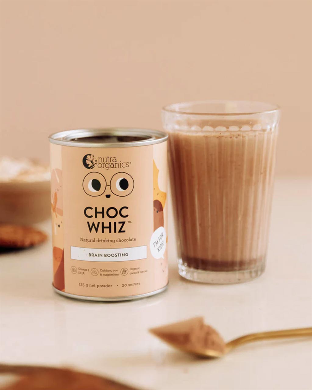 With bioavailable Calcium, Iron, Magnesium, Omega 3 DHA, Prebiotics and 1 billion CFU potent shelf stable Probiotics to restore digestive health, Choc Whiz supports^: